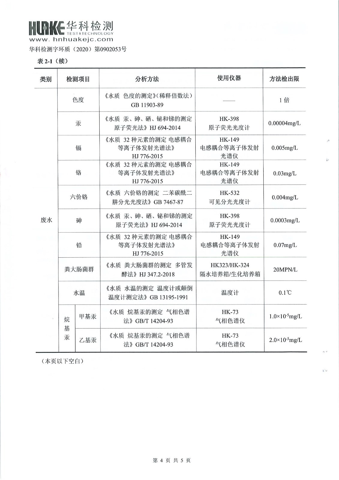 华科检测 2020年9月污水检测报告