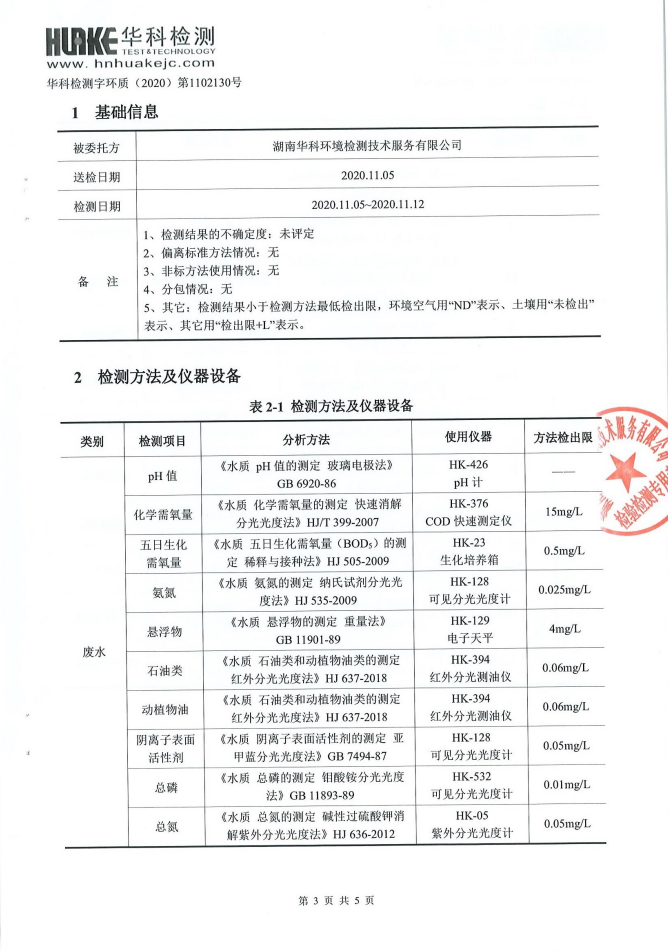 华科检测 2020年11月污水检测报告