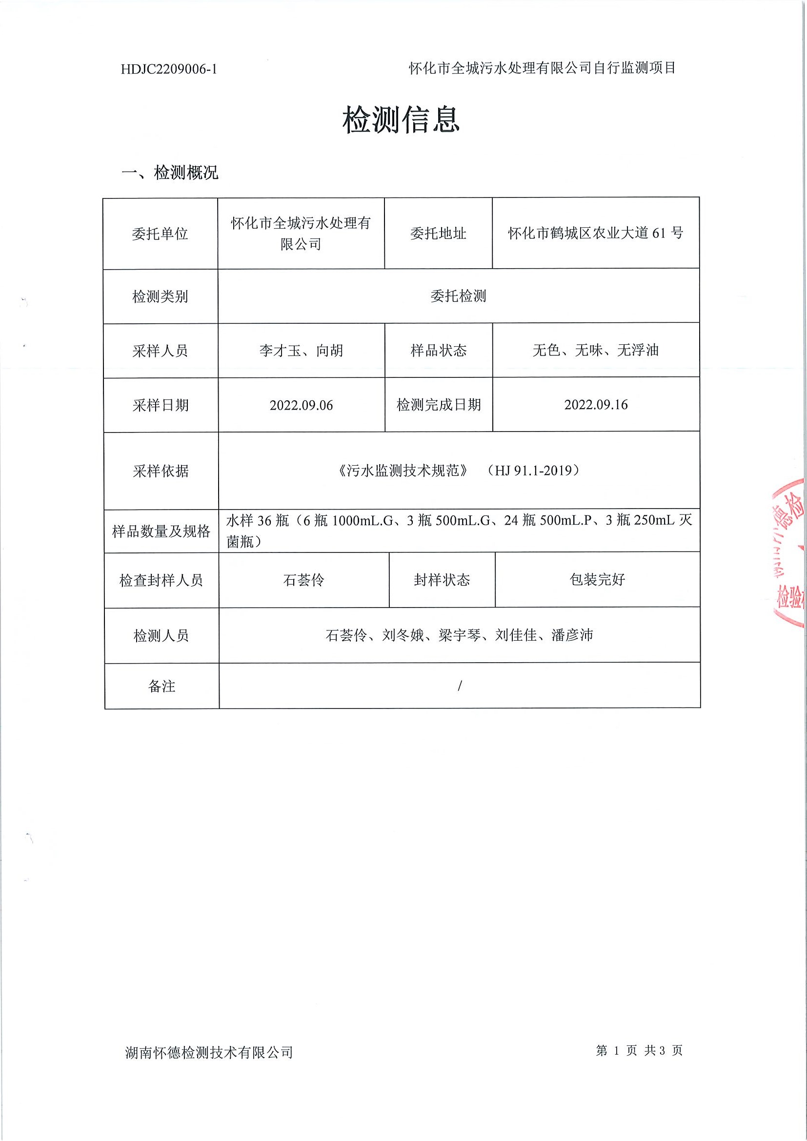 湖南怀德检测技术有限公司 2024年12月 污水出水检测报告